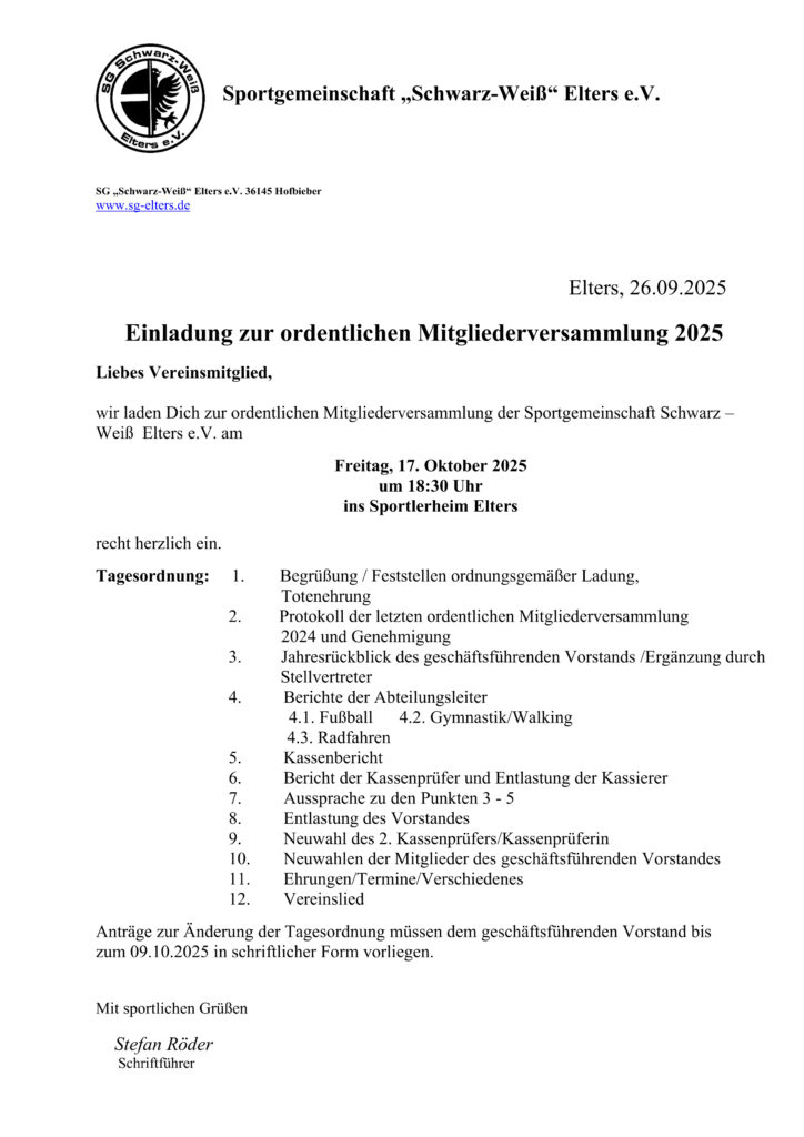 Der geschäftsführende Vorstand der SG Schwarz Weiß Elters besteht aus den folgenden acht gleichberechtigten Mitgliedern: